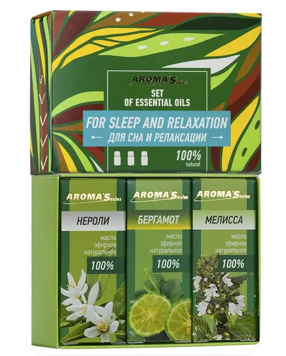 Набор эфирных масел Aroma'Saules "Для сна и релаксации" (масло эфирное бергамот, масло эфирное мелисса, масло эфирное нероли), 3 х 10 мл