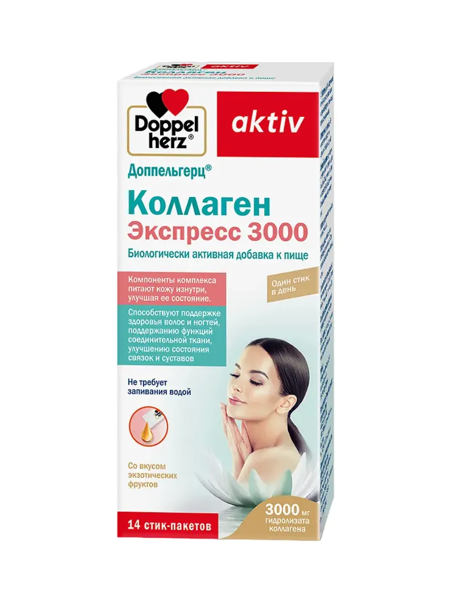 БАД Doppelherz®/Доппельгерц Коллаген Экспресс 3000 жидкость в стик-пакетах 11 г №14, для кожи, волос и ногтей, для суставов и связок купить в Несвиже по доступной цене